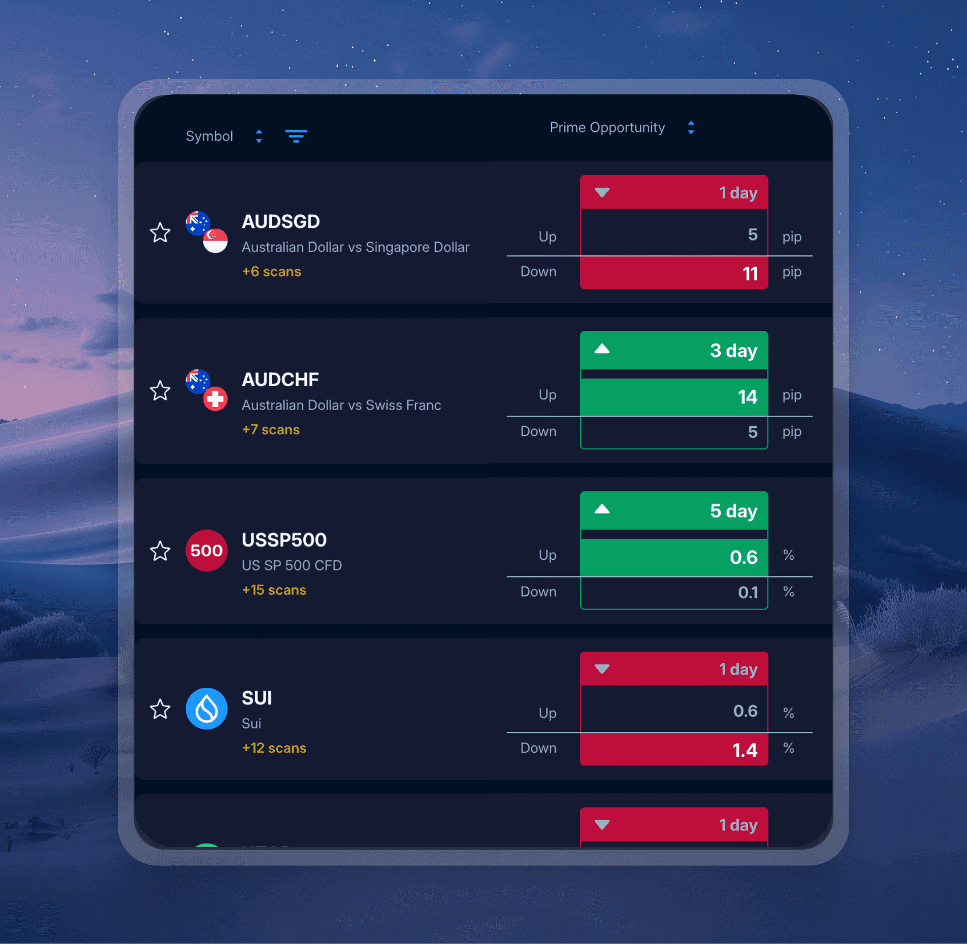 Filter out the noise and identify Prime Opportunities: high-probability setups.